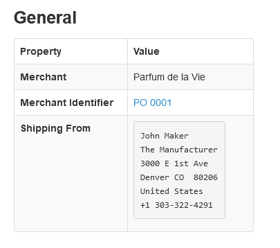 From here, you can review the PO information and “Shipping From” information that was previous entered, in the “General” section: