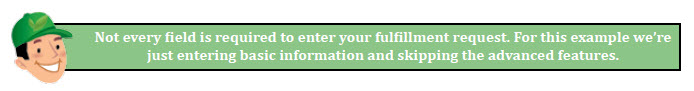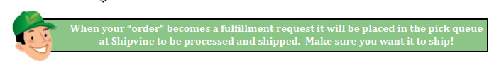 If you have no errors, then the system will display a green "Fulfill" button at the top of the page. When you press this button, the request will be processed and sent to the order picking queue to be picked, packed, and shipped. At this point, the