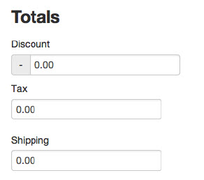 If you want to add an order-level discount, tax, or additional shipping charge to the total, enter it here, or just leave it at zero. These values will show up on any receipts that you select to have included, and it'll show up on international customs paperwork, too.